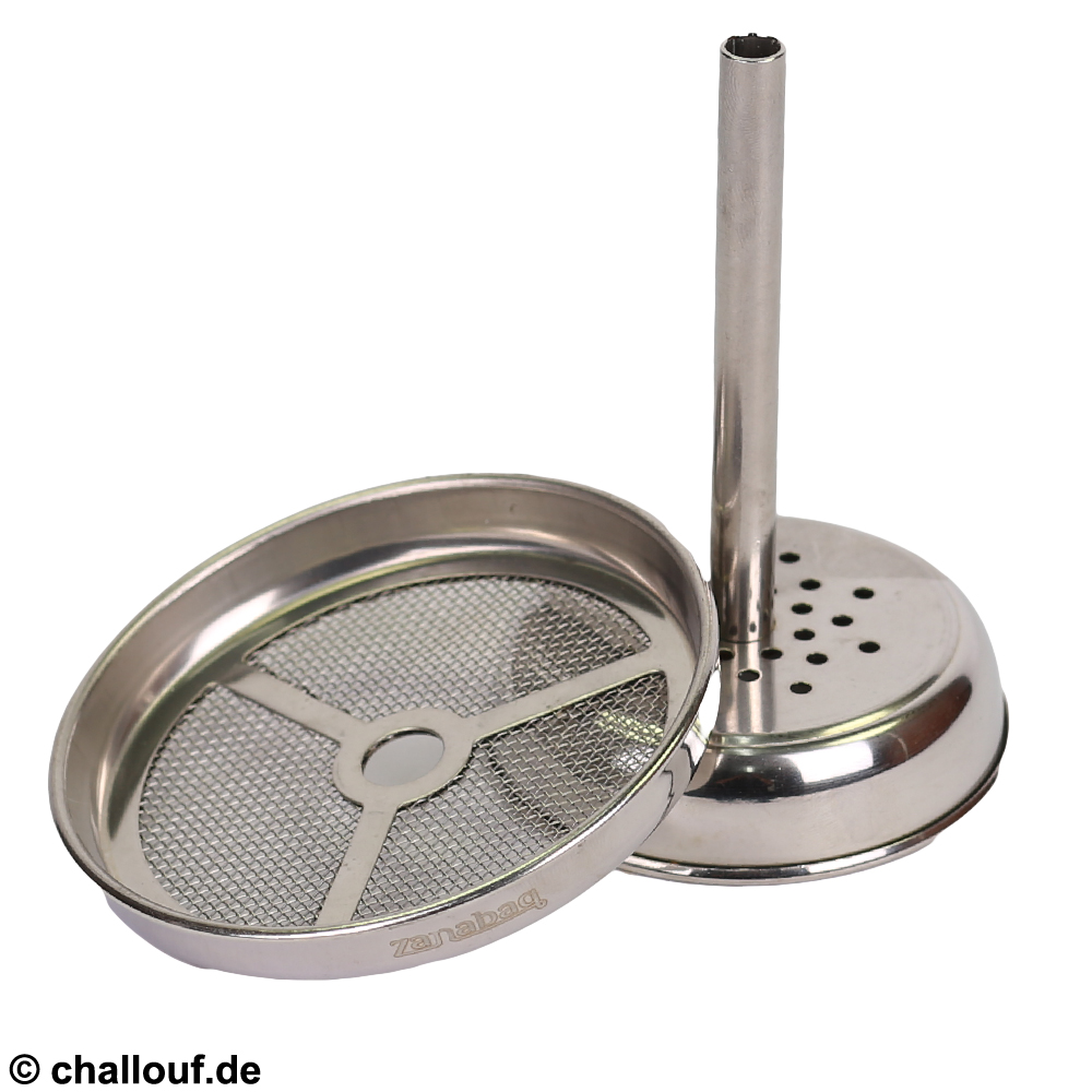 Der Kaminaufsatz macht den Aufbau deines Setups spielend einfach: Einfach auf den befüllten Tabakkopf setzen und Kohle drauf - fertig! Du sparst dir die Verwendung von Alufolie, den hitzeresistenten Kaminaufsatz kannst du immer wieder benutzen. Du erreichst mit dem Kaminaufsatz höhere Temperaturen als mit Alufolie und solltest du es doch mal weniger heiß mögen legst du die Kohlen einfach weiter aussen an den Rand des weiten Gitters und regulierst dadurch die Hitze. Der Aufsatz ist aus rostfreiem Edelstahl und somit einfach mit Wasser zu reinigen.