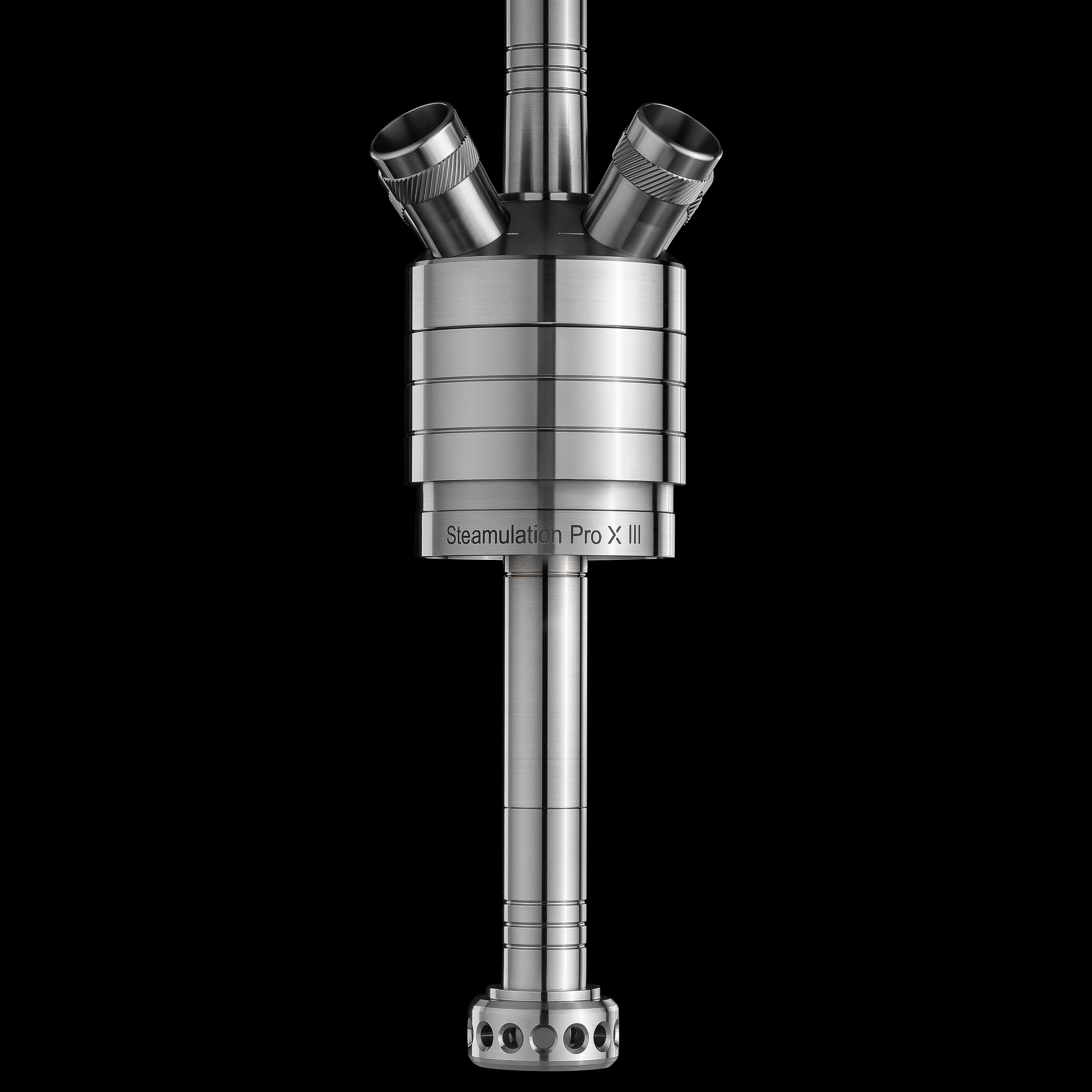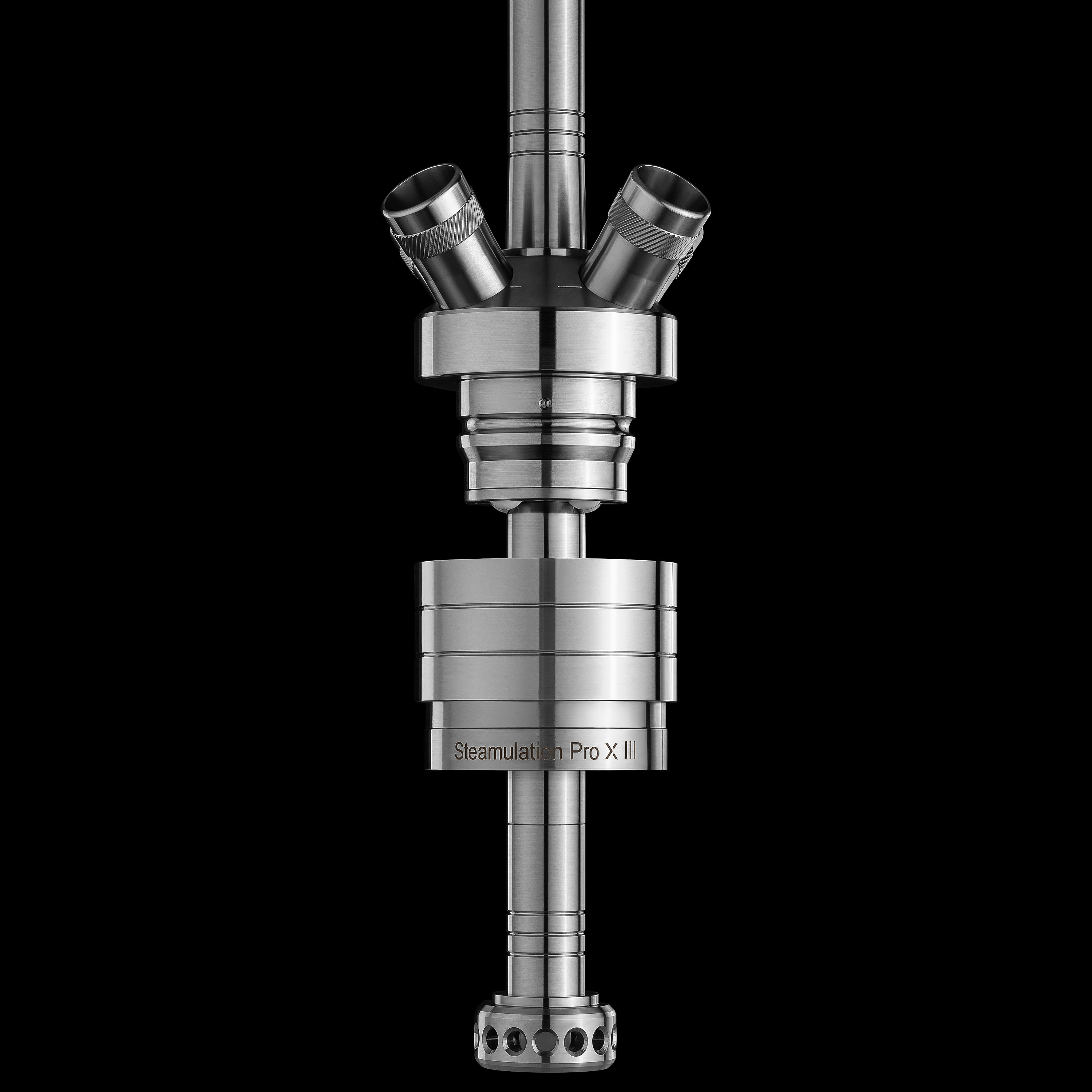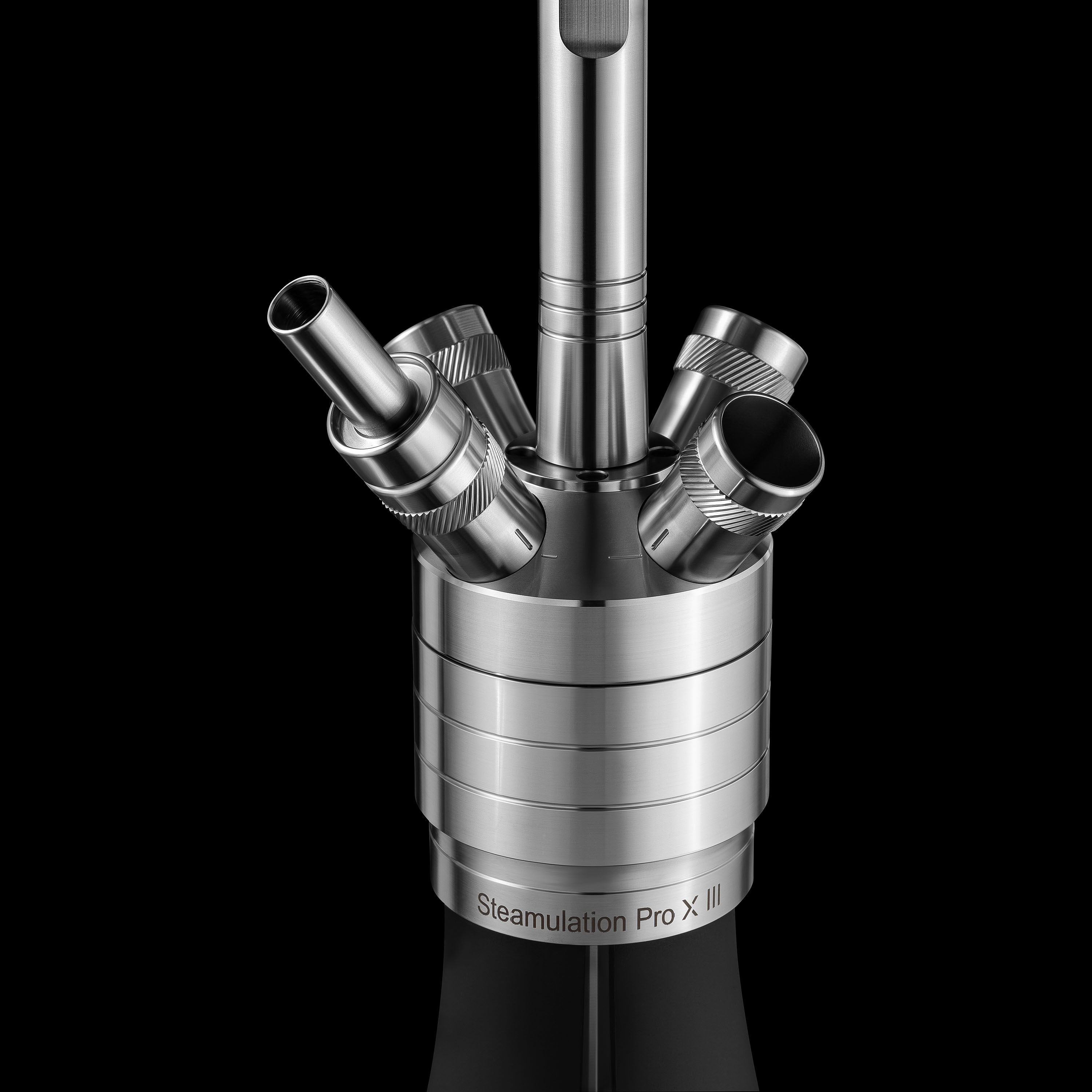 Die Steamulation Pro X III ermöglicht es ihren Nutzern einzeln den Durchzug an jedem Schlauchanschluss mithilfe der Steamulation Airflow Control zwischen traditionell und modern nach Belieben individuell anzupassen. Gegenüber dem Vorgänger wurde der Maximaldurchzug erhöht sowie die Schlauchanschlüsse angepasst, um Feuchtigkeit direkt zurück in die Basis zu leiten. Zudem können die Anschlüsse nun komplett verschlossen werden, um die Überdruckfunktion abzuschalten.